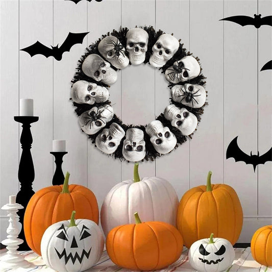 Stunning 15.7 In. Skulls and Chains Wreath – The Ultimate Halloween Decoration for a Spooky Home!